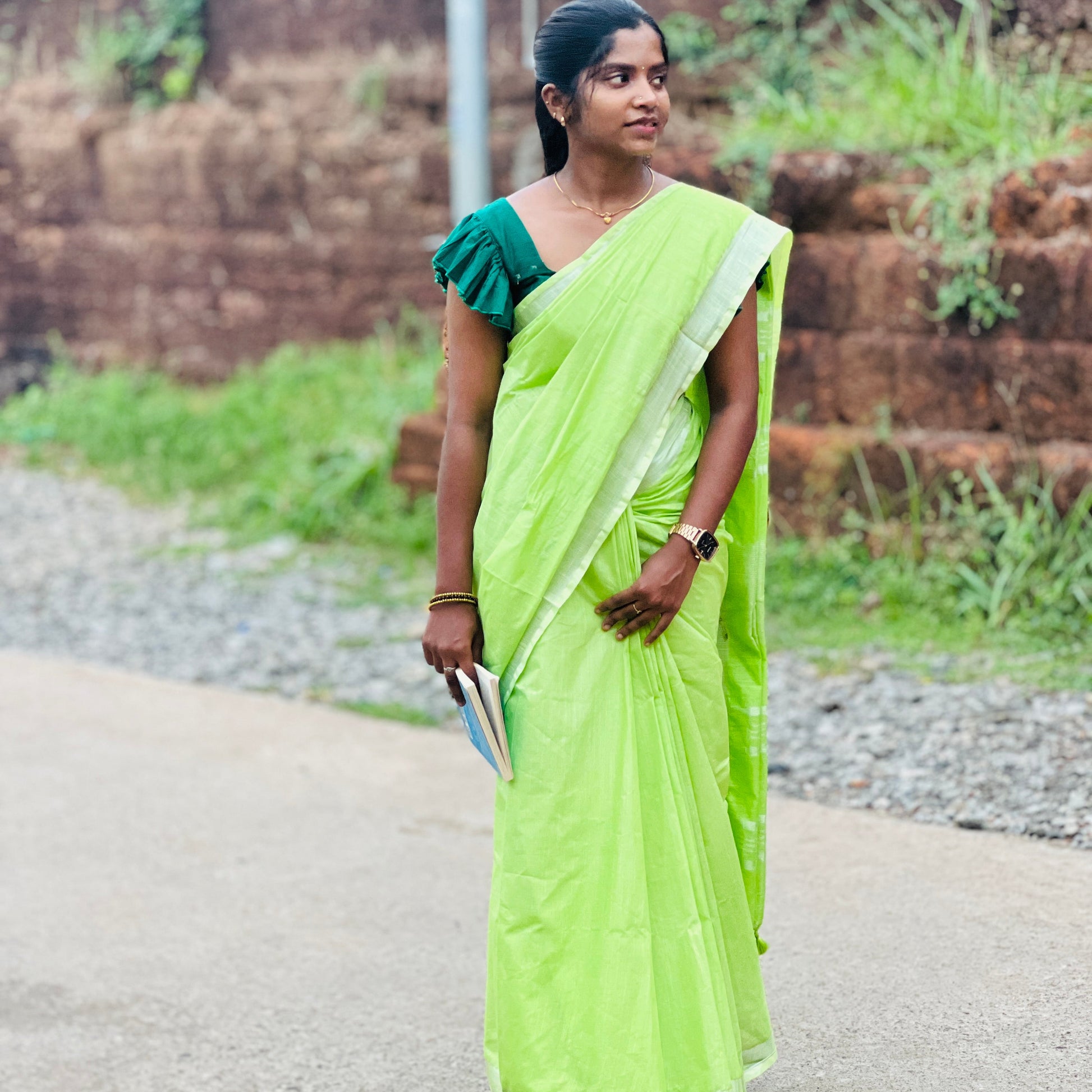 Yellow Linen Saree with a Silver Zari Border-Crafted from premium linen fabric, this saree is lightweight, breathable, and ideal for all-day wear, especially in warm weather. Fabric is Pure linen with a soft, natural texture and a subtle sheen. The silver zari border adds a touch of traditional elegance without overpowering the simplicity of the weave.