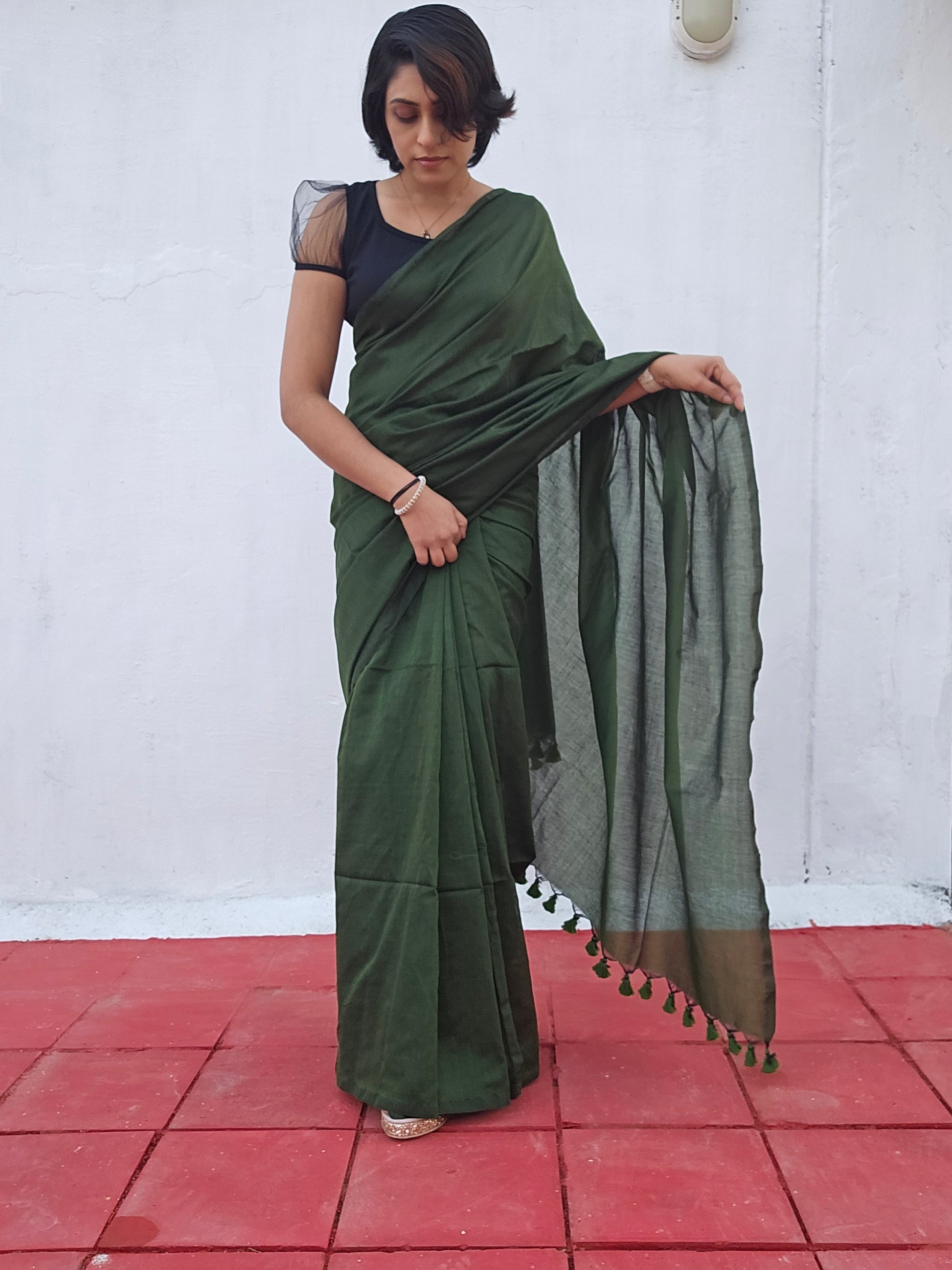 This Mehndi Green Handloom Saree is made from high-quality Khadi cotton handloom fabric, it offers a comfortable fit and a beautiful drape. Elevate your workday style with our cotton handloom sarees, designed for modern professionals. These lightweight, breathable sarees blend timeless elegance with all-day comfort.