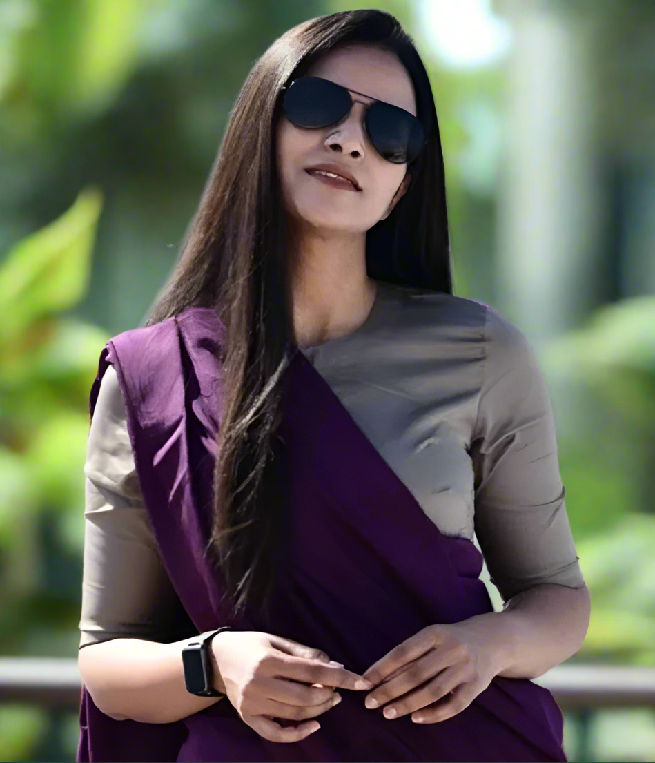 Blouse Pairing: - Printed Blouses: Pair the plain saree with block-printed or hand-painted blouses for a striking contrast.